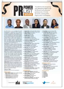 The PR Power List is an annual ranking that honours professionals who have shaped narratives and driven impactful change within the communication landscape, both in Nigeria and across the diaspora.