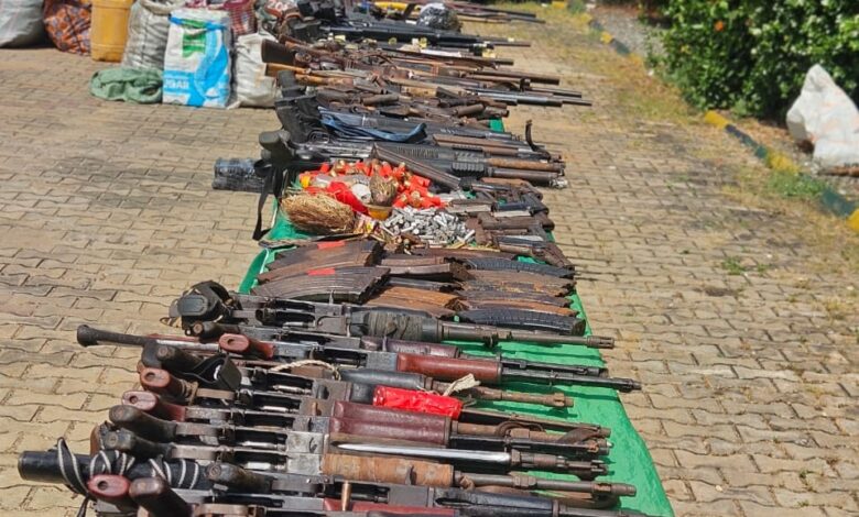 The arms recovered included 27 AK-47/AK-49 rifles, 25 Beretta pistols, 56 single barrel/cut-to-size guns and 36 pump-action guns.