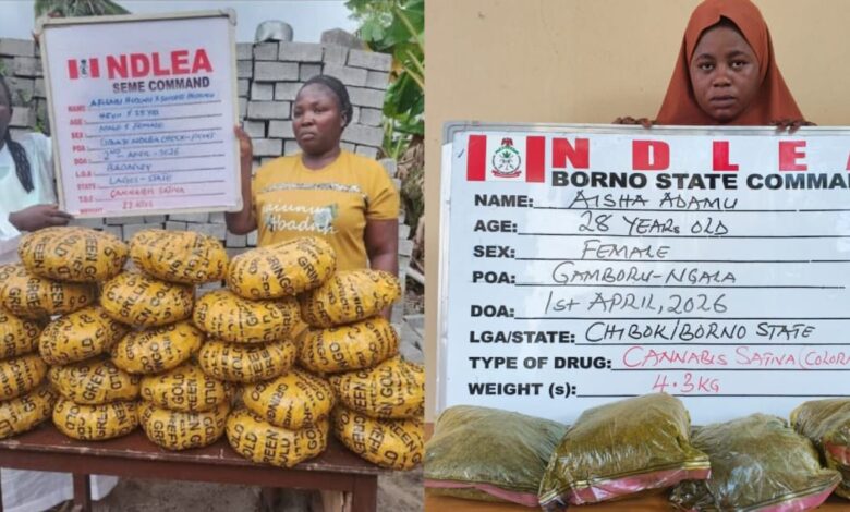 In Borno State, NDLEA operatives also intercepted 28-year-old Aisha Adamu, a female drug supplier to bandit groups operating between the North East and Chad.
