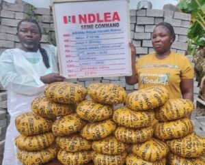 The agency revealed that the couple’s arrest followed the apprehension of a fake security agent, Sunday Samuel, 35, at the same checkpoint on Monday, March 30, while he was conveying 24.5 kg of skunk from the Seme border to Lagos.