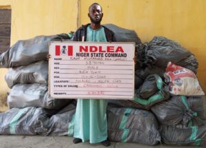 “Following credible intelligence about the illicit drug activities of Gamboli, NDLEA operatives had on 20th November 2025 raided his house at Anguwan Makera, Kuta, where they recovered 471.8 kilograms of skunk, a strain of cannabis.