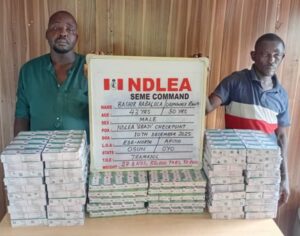 While the duo of Bashiru Babalola, 43, and Ugunwale Ranti, 50, were arrested on Wednesday, December 10, at Gbaji checkpoint, Seme Road Badagry, Lagos with 50,000 pills of tramadol 250mg, NDLEA operatives in Ogun State arrested two suspects — Akinwale Makanjuola and Joseph Owolabi with 73kg skunk at Iperu. Another suspect identified as Wasiu Lateef was nabbed with 25kg of same substance at Oke Agbede, Imeko area of the state on Tuesday, December 9.