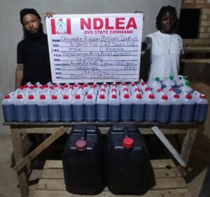 While the trio of Abba Hassan, Anas Moh’d Auwal, and Sadik Ismail were arrested in Sabon Gari area of Kano with 1,000 ampoules of pentazocine injection on Tuesday, January 20, the duo of Olajumoke Ridwan and Baruwa Ibukun were nabbed at Paris lounge, Ring road, Ibadan, Oyo State, on Thursday, January 22, with 181.5 litres of skuchies (a mixture skunk and other illicit substances) recovered from them.