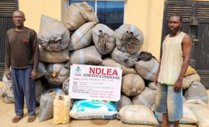 A village head, Chief James Abamu and another suspect, Aboy Egah Abamu have been taken into custody by the Edo State Command of NDLEA following their arrest and prompt transfer to the Agency by soldiers of the Nigerian Army 4 Brigade, Benin City. The arrest followed a raid operation at Lagos camp Ilushi in Esan South East LGA, where 681kg skunk and 181kg cannabis seeds were recovered from them on Wednesday, January 21.