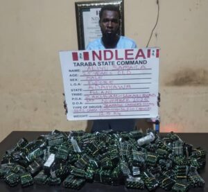 In Taraba, NDLEA officers arrested a suspect Felix Tanko Chinedu, 28, with 15,020 capsules of tramadol at Kasuwabera ATC in Ardo Kola Local Government Area of the state on Thursday, November 6.