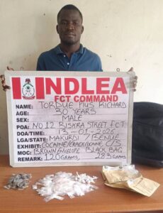 Another suspect, Tordue Pius Richard, 30, was on Tuesday, January 13, arrested with 148.3 grams of cocaine and skunk at his 12 Biskira Street, Abacha Estate, Abuja home.