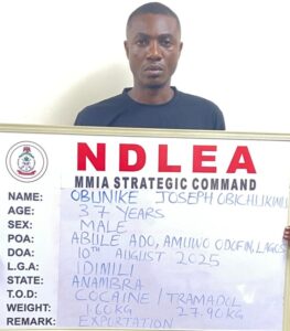 Similarly, two kingpins of another syndicate — Obunike Joseph Obichukwu and Uzorchukwu Godspower Chukwurah, were arrested by NDLEA operatives following the seizure of 2.60kg cocaine and 27.90kg tramadol concealed in motor spare parts being exported to Gabon through the Lagos airport on July 19, 2025.