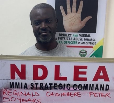 A wanted drug kingpin, Reginald Peter Chidiebere, has surrendered to the National Drug Law Enforcement Agency (NDLEA) following the seizure of large consignments of cocaine and heroin linked to him by operatives at the Murtala Muhammed International Airport (MMIA), Ikeja, Lagos.