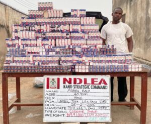 A suspect, Ashiru Bala, 45, was arrested with 1,499 bottles of codeine syrup at Lambu, Tafa LGA, Kano State, on Wednesday, February 25 while conveying the consignment in his Volkswagen Golf car marked CA 911 ABC. Another suspect Yahaya Usaini, 21, was nabbed on Friday, February 27 while transporting 87.4 kilograms of skunk in a Toyota Hiace bus with registration number KUJ 544 RL along Zaria-Dutsinma road, Katsina State.