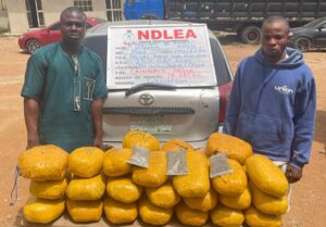In Osun, two suspects — Adewale Fatunmise, 40, and Adebisi Korede, 25, were arrested by NDLEA operatives in connection with the seizure of 18.085kg skunk at Aregbe area of Osogbo, the state capital, on Monday, February 23.