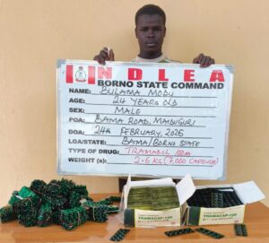 The statement added: “While 499.2kg skunk was recovered at Dei-Dei area of the FCT, Abuja, on Wednesday 25th February, a suspect, Bulama Modu, 24, was intercepted in a commercial vehicle conveying 7,000 capsules of tramadol along Bama -Konduga road, Borno State, on Tuesday 24th February.”